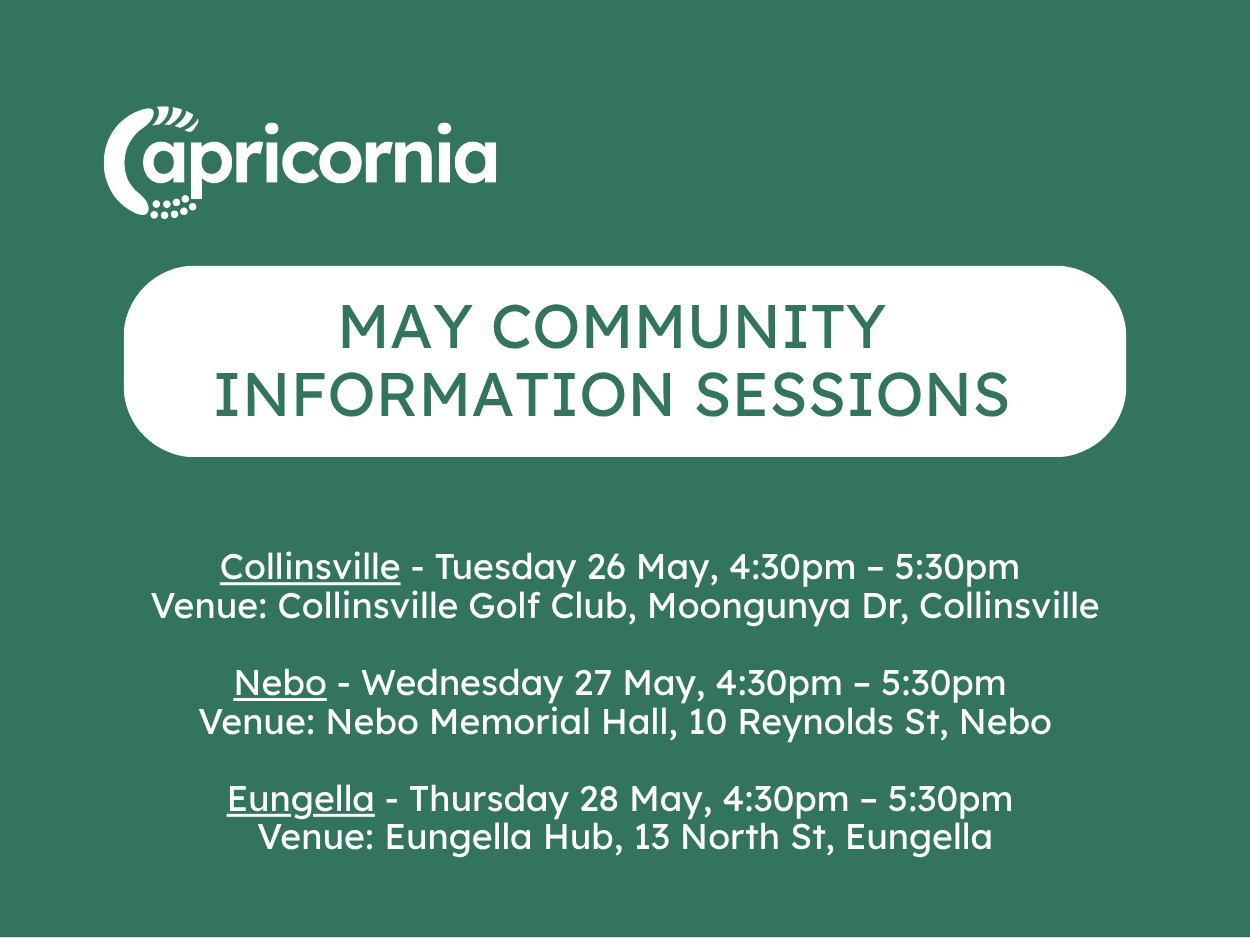 Join us in Eungella, Nebo or Collinsville for our next round of Capricornia Pumped Hydro Project information sessions.